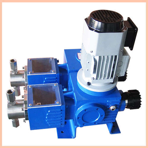 機械隔膜泵:由電機驅動,由電機帶動旋轉,測量泵的柱塞做往復直線運動,從而帶動機械隔膜實現往復運動,實現液體的吸收或排出。